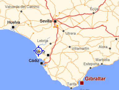 a short distance west from Jerez de la Frontera |