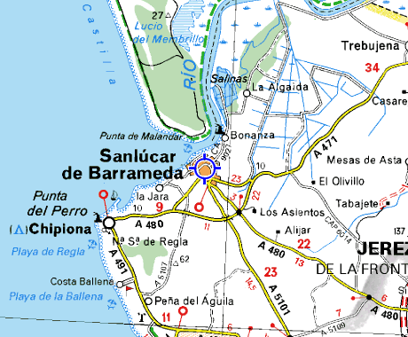 The above map shows Sanlucar de Barrameda,